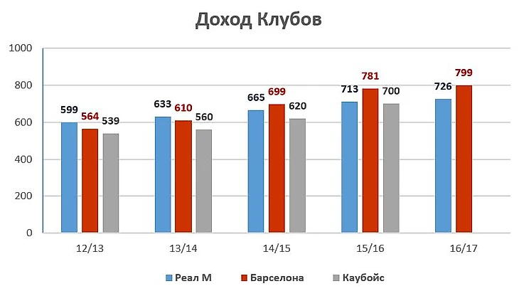 Информация о «Барселоне» и «Реале» взята из финансовых отчетов клубов. Суммы указаны в долларах США по курсу 1€=1,15$. Цифры на сезон 2016-17 отражают прогнозы команд, заложенные в бюджеты.