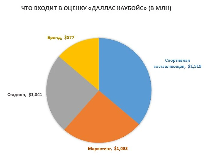 Согласно подсчетам Форбс, сделанным в сентябре 2016 года, стоимость «Каубойс» выросла до $4,2 миллиарда. Вот что издание включило в оценку команды: