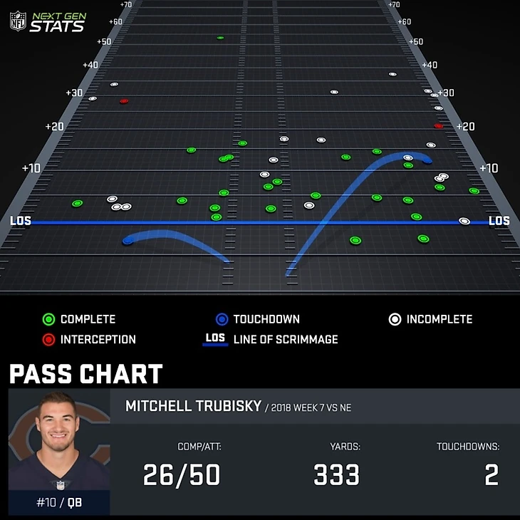 — Оставим в стороне перехваты - не считая Хейл Мэри, Трубиски 9 раз кидал передачи на 20+ ярдов и ни одна из них не закончилась приемом. Проблема с дальними бросками никуда не ушла!