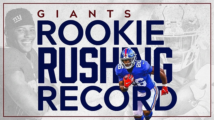 Прежде всего, отметим, что Баркли поднялся на первое место в клубной истории по числу ярдов на выносе, набранных бегущим в его первый сезон в НФЛ, — сейчас в активе у Сакуона 1124 ярда, в то время как у Альфонсо «Таффи» Лиманса, идущего вторым в истории «Джайентс» по этому показателю, 830 ярдов на выносе в статусе новичка.
