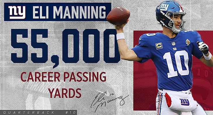 Ещё одним историческим достижением во встрече с «Редскинз» отметился Илай Мэннинг — легендарный футболист стал лишь седьмым квотербеком в истории НФЛ, “пробившим“ отметку в 55 000 пасовых ярдов за карьеру.