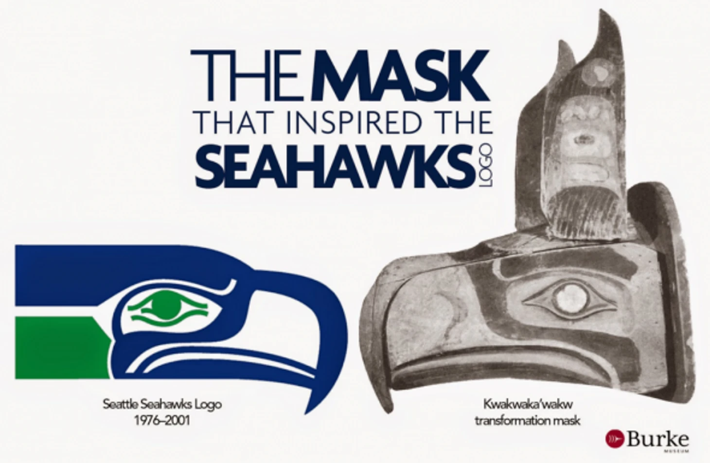 Еще больше усложняет классификацию Seattle Seahawks логотип команды, который, по данным Музея Берка Университета Вашингтон. был вдохновлен " Kwakwaka wakw transformation mask" c изображением орла. " Маска, показанная в книге Билла Холма " Искусство индейцев Северо-Западного побережья" 1965 года, была выставлена в Музее Берка в 2015 году.)