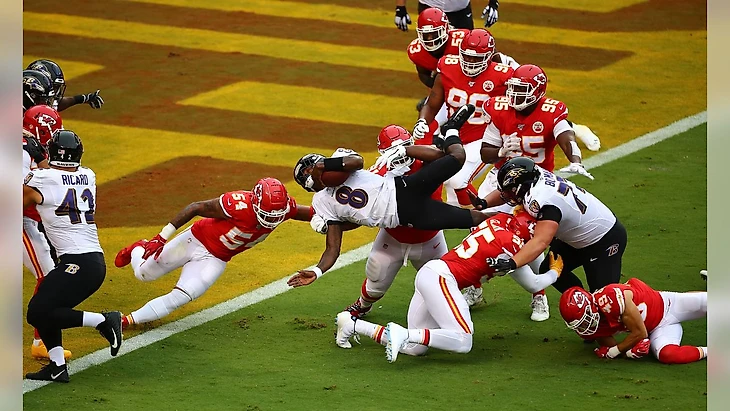 "Канзас-Сити Чифс"-"Балтимор Рэйвенс" 33:28.Квотербек хозяев Патрик Махомс заработал 374 ярда и 3 тачдауна.Его визави Ламар Джексон набрал 267 ярдов,раннинбек Марк Инграм имеет в активе 103 ярда и 3 занесённых тачдауна."Вожди" выиграли 3 игру подряд.