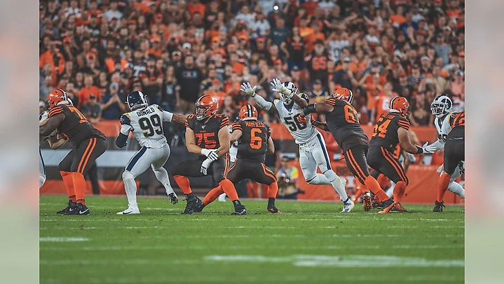 "Кливленд Браунс"-"Лос-Анджелес Рэмс" 13:20.Квотербек гостей Джаред Гофф заработал 269 ярдов,два тачдауна и пропустил два перехвата.Ресиверы Купер Капп и Брендин Кукс имеют в активе по 102 и 112 ярдов соответственно,Купер Капп занёс два тачдауна.Квотербек хозяев Бэйкер Мэйфилд заработал 195 ярдов,один тачдаун и пропустил один перехват."Бараны" выиграли 3 игру подряд.