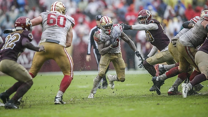 "Сан-Франциско 49"-"Каролина Пантерз" 51:13.Квотербек хозяев Джимми Гаропполо заработал 175 ярдов,2 тачдауна и пропустил 2 перехвата.Раннинбек Тевин Коулман имеет в активе 105 ярдов и 3 занесённых тачдауна.Квотербек гостей Кайл Аллен заработал 158 ярдов и пропустил 3 перехвата,раннинбек Кристиан МакКаффри имеет в активе 117 ярдов и один занесённый тачдаун."49-е" выиграли все 7 матчей.