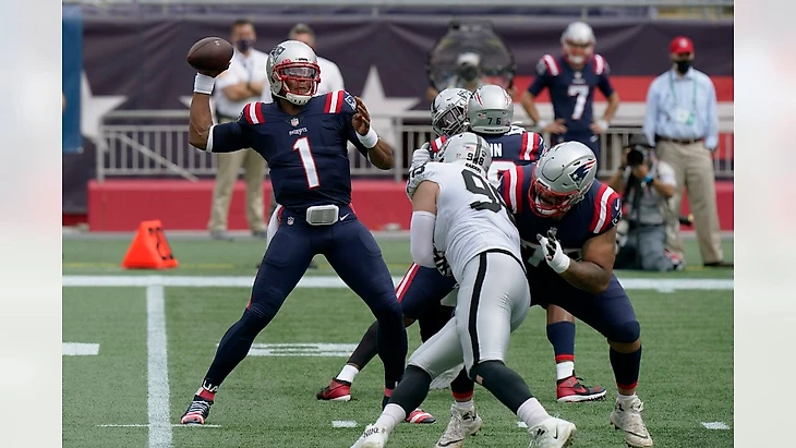 "Нью-Инглэнд Пэтриотс"-"Лас-Вгас Рэйдерс" 36:20.КФвотербек Кэм Ньютон заработал 162 ярда.один тачдаун и пропустил один перехват.Раннинбек Сони Мичел имеет в активе 117 ярдов.Квотербек гостей Дерек Карр заработал 261 ярд и 2 тачдауна.