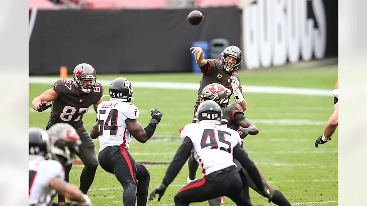"Тампа-Бэй Буканирс"-"Атланта Фэлконс" 44:27.В последней четверти хозяева набрали 21 очко.Квотербек Том Брэди заработал 399 ярдов,4 тачдауна и пропустил один перехват.Ресиверы Антонио Браун и Крис Гудвин имеют в активе по 138 и 133 ярда,а также по 2 занесённых тачдауна.Кикер Райан Саккоп реализовал все 5 филд-голов.Квотербек гостей Мэтт Райан заработал 265 ярдов и 2 тачдауна."Пираты" выиграли 4 игру подряд.