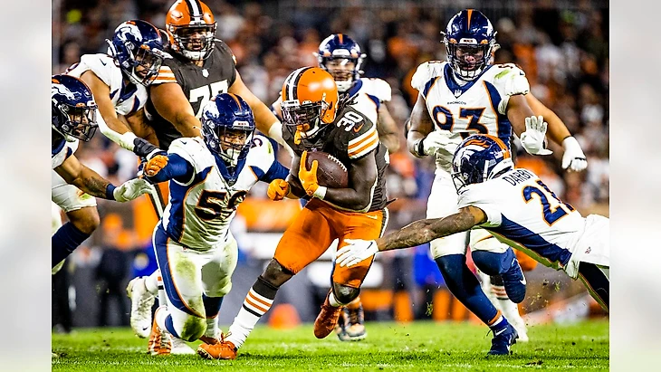 "Кливленд Браунс"-"Денвер Бронкос" 17:14.Квотербек хозяев Кэйс Кинум заработал 199 ярдов и один тачдаун,раннинбек Д'Эрнест Джонсон набрал 146 ярдов и занёс один тачдаун.Квотербек гостей Тедди Бриджуотер заработал 187 ярдов,два тачдауна и пропустил один перехват."Мустанги" проиграли 4 игру подряд.