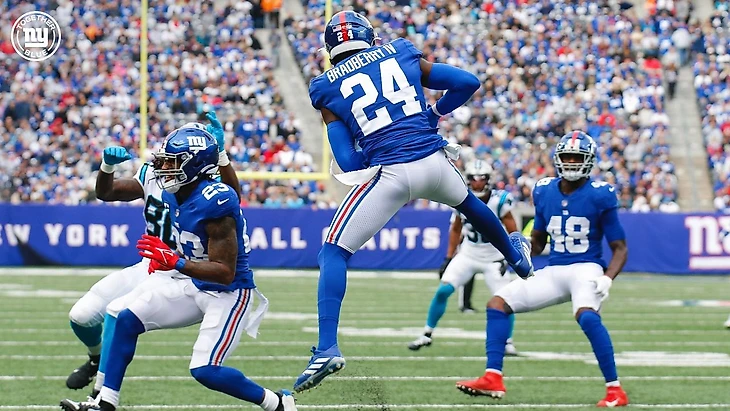 "Нью-Йорк Джайентс"-"Каролина Пантерз" 25:3.Квотербек хозяев Даниэль Джонс заработал 203 ярда и один тачдаун.Его визави Сэм Дарнольд имеет в активе 111 ярдов и один перехват."Пантеры" проиграли 4 игру подряд.