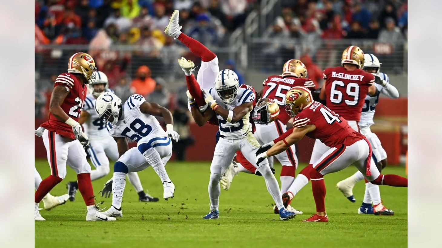 "Сан-Франциско 49"-"Индианаполис Кольтс" 18:30.Квотербек гостей Карсон Вентц заработал 150 ярдов и два тачдауна,ранинбек Джонатан Тэйлор набрал 107 ярдов и занёс один тачдаун,ресивер Майкл Питтман имеет в активе 105 ярдов и один занесённый тачдаун.Квотербек хозяев Джимми Гаропполо заработал 181 ярд.один тачдаун и пропустил два перехвата.Раннинбек Эли Митчелл набрал 107 ярдов и занёс один тачдаун,ресивер Дибо Самуэль имеет в активе 100 ярдов и один занесённый тачдаун."49-е" проиграли 4 игру подряд.