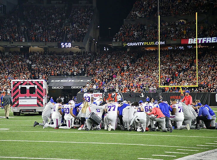 Примерно спустя час после падения Хэмлина НФЛ – по просьбе игроков и тренеров – объявила о переносе матча на неопределенный срок. Полная отмена тоже допускается, руководство Лиги справедливо замечает, что сейчас это не самый важный вопрос.