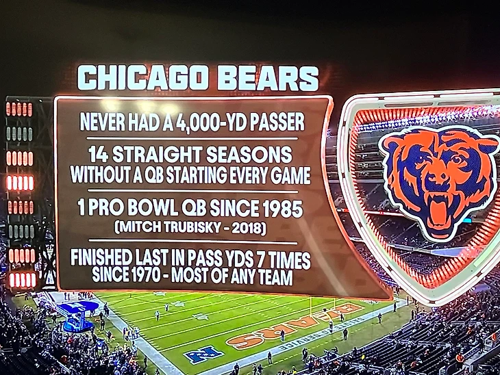 Ни одного сезона в истории «Чикаго», в котором квотербек набирал бы больше 4000 ярдов пасом