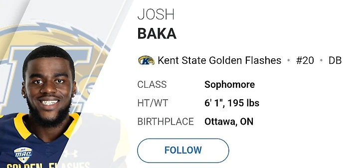 Уроженец столицы Канады смог поучаствовать только в поражениях «Кент Стейт». В среднем за матч Джош Бака набирал чуть более 3 захватов. В игре против «Ball State» канадец сделал захватов, что стало его лучшим результатом за сезон как и по захватам в целом, так и по сольным действиям. За этот год Джош набрал всего 25 захватов и 2 блок-паса.
