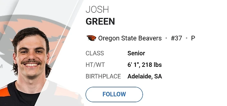 Австралийских пантеров в лучшей студенческой лиге США очень-очень много. Не знаю, связано ли это с австралийским футболом, но это факт. «Орегон Стейт» провели очень результативный сезон. К примеру, в ноябрьском матче против «Стенфорда» игроки из Орегона смогли набрать 62 очка. Всего за сезон к услугам Джоша Грина обратились 32 раза. Грин смог набрать 1,343 ярда, записывая на с 42 ярда за пант в среднем.