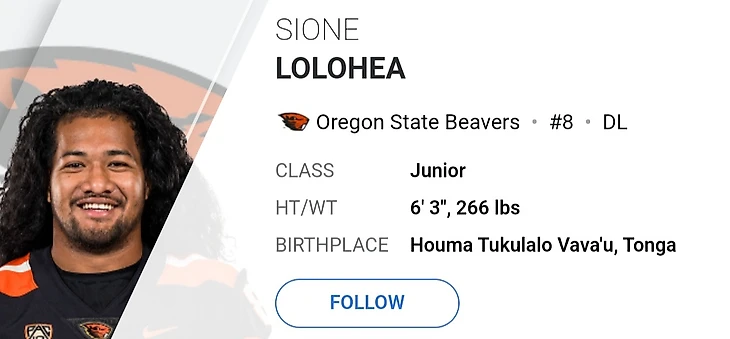Игрок линии из страны, где регби популярнее американского футбола. Сионе Лолохеа и сам играл в регби в более юнном возрасте, но судьба его связала с амфутом. В этом сезоне Сионе принял участие в 10 матчах, в которых сделах 19 сольных захватов и 20 ассистирующий. В игре против «Aggies» был единственный полный сек игрока. Если небрать результаты прошлогоднего «Las Vegas Bowl», то Лолохеа смог прибавить к своему результату 11 секов. Ждем выступление танганцы на «Tiger Sun Bowl».