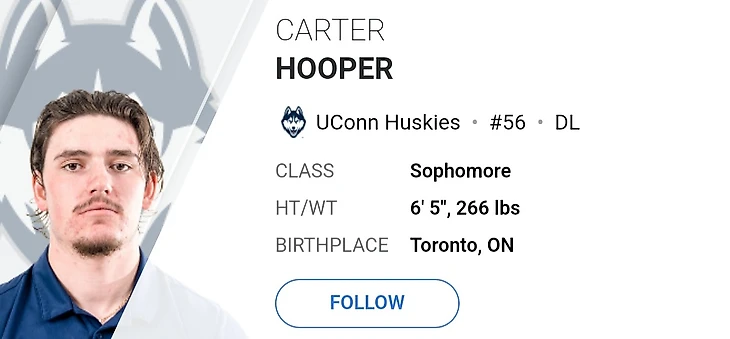 Лайнмену защиты из Торонто удалось поучаствовать сразу в двух из трех победных матчах «хаски» этого сезона. Большую часть своих захватов Картер набрал не в одиночных единоборствах. В начале и середине сезона игрок провел пару игр с набором в 2-3 захвата, но в основном набирал по одному. Хупер пришел в коннектикутский университет еще в далеком 2019 и привлек своей работой над сэками. Второй год подряд у канадца получается набирать чуть больше 10 захватов за сезон.