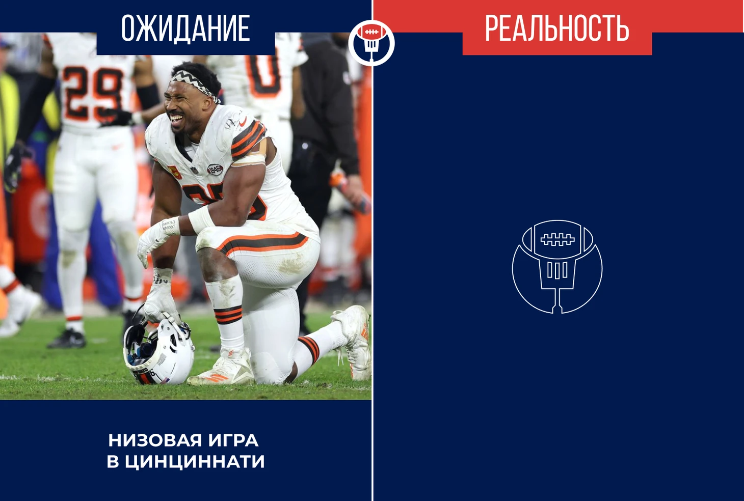 Вместо Флакко на поле выйдет Джефф Дрискел, который вряд ли порадует нас фейерверком результативных действий. Его оппонентом выступит Джейк Браунинг, который приятно удивил в отсутствие Джо Бурроу. И я не предсказываю, что Браунинг превратится в тыкву. Но у «Кливленда» слишком впечатляющая защита, которая наверняка сумеет превратить матч в бодание на линии схватки. В результате ставки на вынос с обеих сторон игра наверняка будет течь быстро и завершится относительно незаметно ниже букмекерского прогноза в 37,5 очков на две команды.