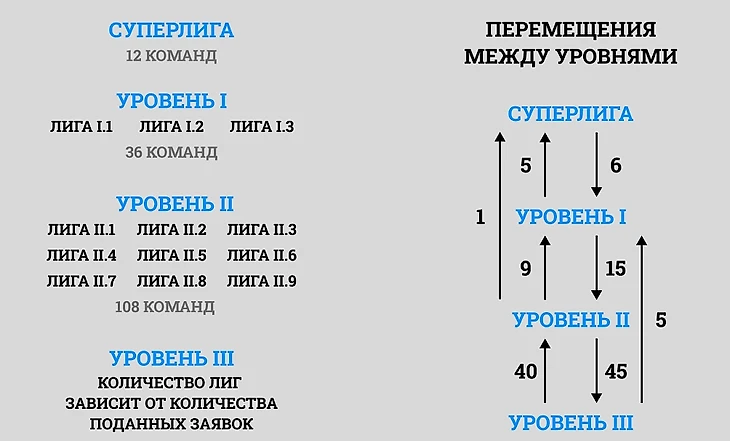 В Суперлиге участвует 12 лучших фэнтези-менеджеров. На первом уровне 3 лиги и 36 команд. Победители лиг и двое из лучших, занявших второе место, получает путевку в Суперлигу на следующий год. На втором уровне 9 лиг и 108 команд. Лучший среди победителей отправляется сразу в Суперлигу, минуя первый уровень. Остальные восемь победителей и лучший среди вторых мест получают путевки на первый уровень. На третьем уровне количество команд зависит от количества поданных заявок на участие. Пять лучших среди победителей третьего уровня отправляются напрямик на первый уровень. Почти всегда победители и финалисты и часто менеджеры, занявшие третье место, поднимаются на второй уровень. Новички и те, кто не участвовал в прошлом сезоне, начинают свой путь на третьем уровне.