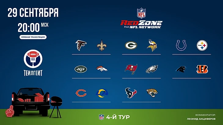 Обе волны NFL Red Zone (лучшие моменты и все тачдауны) в исполнении Леонида Анфицерова, поскольку я (Станислав Рынкевич) коротаю время на московском фестивале американского футбола CAFL.