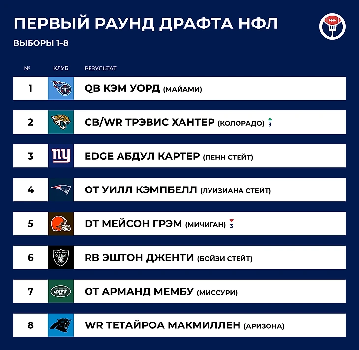 Обмен за Трэвисом Хантером, дичь от «Атланты» и выбор не того квотербека. Что происходило в первом раунде драфта НФЛ