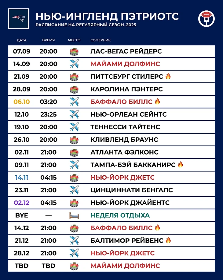 😌 Амбиции: Кажется, болельщики «Пэтриотс» привыкли к новой реальности — после 18 лет доминирования в Американской конференции наступили тёмные (или, как называют их болельщики большинства команд — НОРМАЛЬНЫЕ) времена: 3 года подряд без плей-офф, 6 лет без побед в плей-офф. Громкие изменения в это межсезонье обязаны давать результат. Вопрос только в том, насколько высокий.