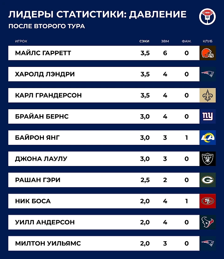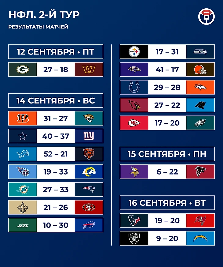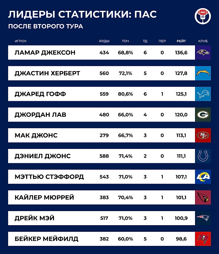 Негостеприимный Детройт, винтажный Расс и Махоумс в роли раннинбека. Что мы увидели во 2-м туре НФЛ
