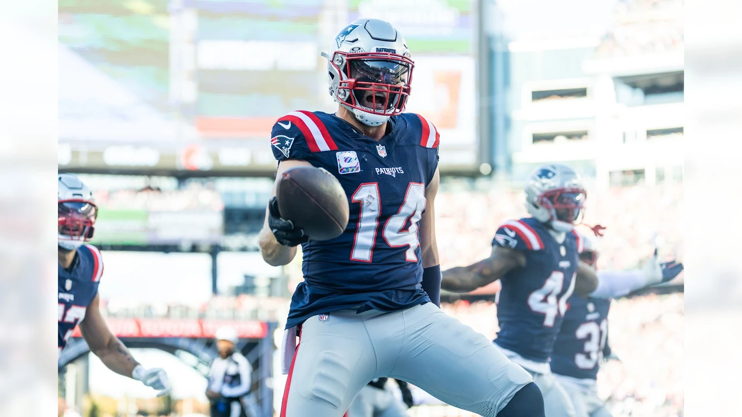 Непривычно тихий Стефон Диггз, эмоциональный мотор «Патриотов», в этом матче сделал всего три приема на 14 ярдов. Но самым важным стал прием, позволивший Диггзу оформить первый тачдаун в сезоне (а ведь уже 8 неделя!). Более счастливого человека после этого кэтча на «Фоксборо Стэдиум» было не найти. Вся бровка поздравляла своего ресивера от все души. Многоопытный принимающий, судя по всему, действительно очень важен команде Врейбела в первую очередь для формирования духа в раздевалке команды. Поздравим Стефона с дебютным тачдауном в форме «Нью-Ингленда» и мы, видно как заждался его игрок.