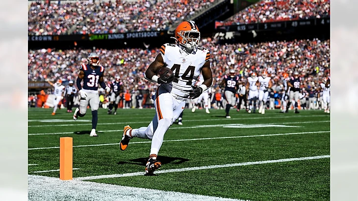 «Браунс» были более успешны, сконструировав успешный драйв и обойдя хозяев поля благодаря 18-ярдовому тачдауну на приеме новичка Харолда Фэннина, который также отмечал международный день тайтэнда.