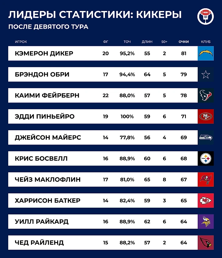 На этом фоне можно только позавидовать терпению Шона Маквея. Второгодка Джошуа Карти не реализовал единственную попытку филд-гола в матче с «Сейнтс» (причем всего с 39 ярдов), а также не забил экстра-пойнт. Из действующих кикеров у него худший процент реализации филд-голов — 66,7% (10 из 15), а также три промаха после тачдаунов.