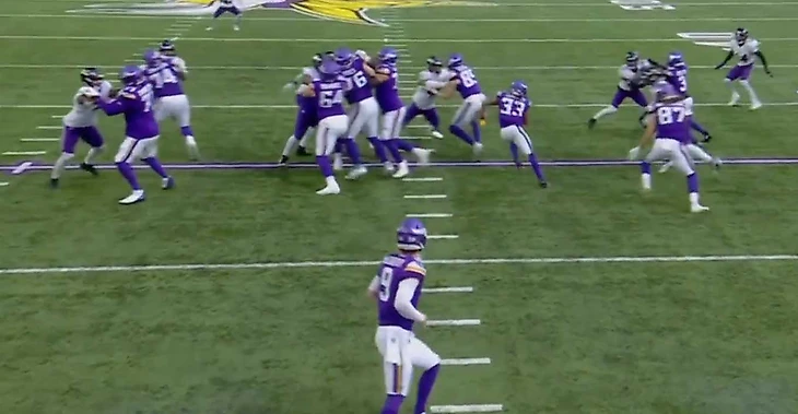Викинги играют 2х-очковую, пас на Джефферсона, тот падает, судьи молчат. 27-19.