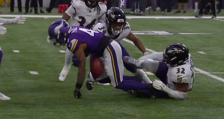 Гилман успевает затэклить. 1&гол, на 4 ярдах. Что-то Хамфри с Авузи, особенно Авузи, в лучших традициях защиты Балтимора этого года.