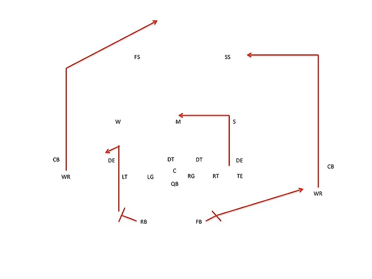Что такое горизонтальные маршруты? Грубо говоря, это маршруты, которые бегутся поперек поля. Если вам что-то говорит, то это маршруты типа слэнт, ин, аут, тот же кёрл и тд. Все они сделаны для того, чтобы принимающий мог как можно быстрее открыться, а квотербек избавиться от мяча.