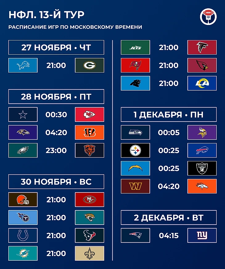 Редкий случай для этой рубрики — можно и футбол посмотреть и выспаться. Благодарим за это День благодарения. Хотя, на самом деле, все три матча достойны просмотра. Да, даже последний из-за возвращения на поле Джо Бурроу. «Тейлгейт» покажет две первых игры.