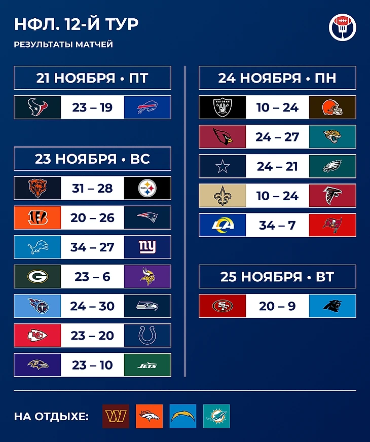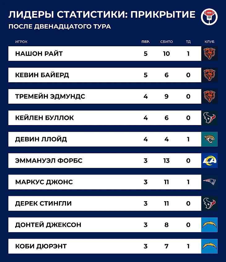 После победы над «Питтсбургом» пора зафиксировать — Бен Джонсон отлично справляется со своей работой в «Чикаго». Когда в последний раз «Беарс» возглавляли дивизион к концу ноября? Нападение подтянулось к десятке лучших по ярдам за драйв, ярдам за розыгрыш, ожидаемым очкам в нападении и ярдам на выносе, хотя в прошлом году обитало в подвале во всех этих категориях. Кейлеб Уильямс стал действовать стабильнее и умнее — хотя пространства для роста еще много, само наличие позитивной траектории должно вдохновлять фанатов «Чикаго».