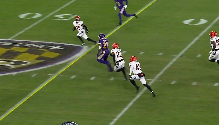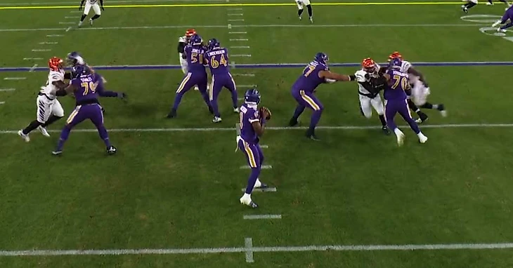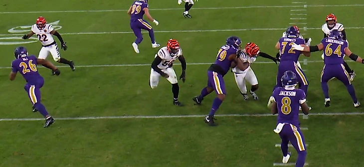 Ламар отстоялся в конверте и побежал. 1 ярд. Аллё! Ребята, это не Джетс, это уже Бенгалс.
