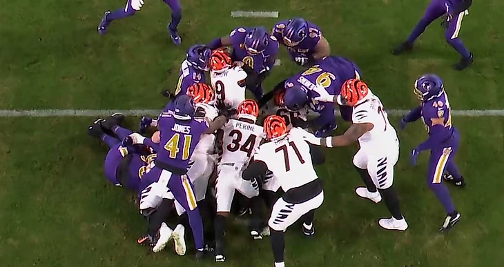 Такое уже было: Бенгалс опустились на дно, но снизу постучали Рэйвенс. И на травму Ламара уже не спишешь. Всё на ихнюю и богиня-Регрессия к среднему уже обеспечивает Рейвенс отсутствие потерь до самого супербола? А рейтинг Ламара теперь будет только максимальным? Плюс два тачдауна, минус три фамбла. Могли и победить. Но нет. Футбольным богам надоели эти Рэйвенс, которые уже не Рэйвенс. Поэтому минус два тачдауна и плюс три фамбла.