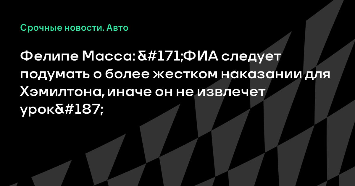 Фелипе Масса: «ФИА следует подумать о более жестком наказании для Хэмилтона, иначе он не извлечет урок»