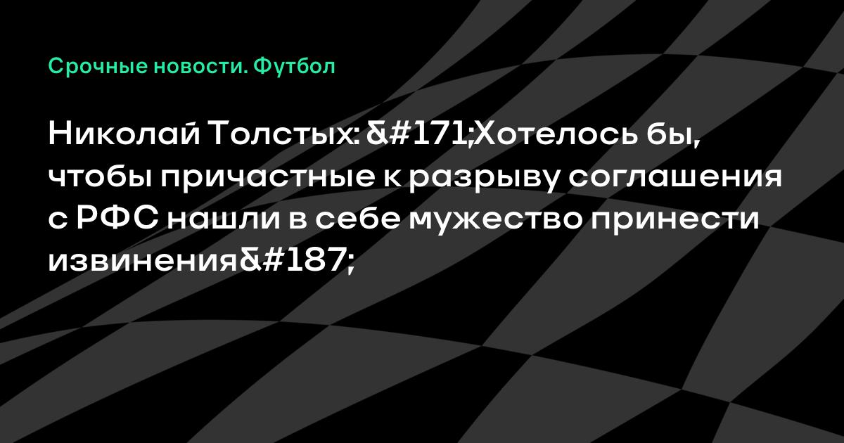 Николай Толстых: «Хотелось бы, чтобы причастные к разрыву соглашения с РФС нашли в себе мужество принести извинения»
