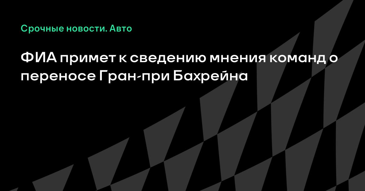 Руководство ФИА заявило, что при принятии решения о возможности проведения Гран-при Бахрейна в этом году будет учитываться мнение команд «Формулы-1». Напомним, что обсуждаться вопрос о переносе гонки будет 3 июня – в ближайшую пятницу.