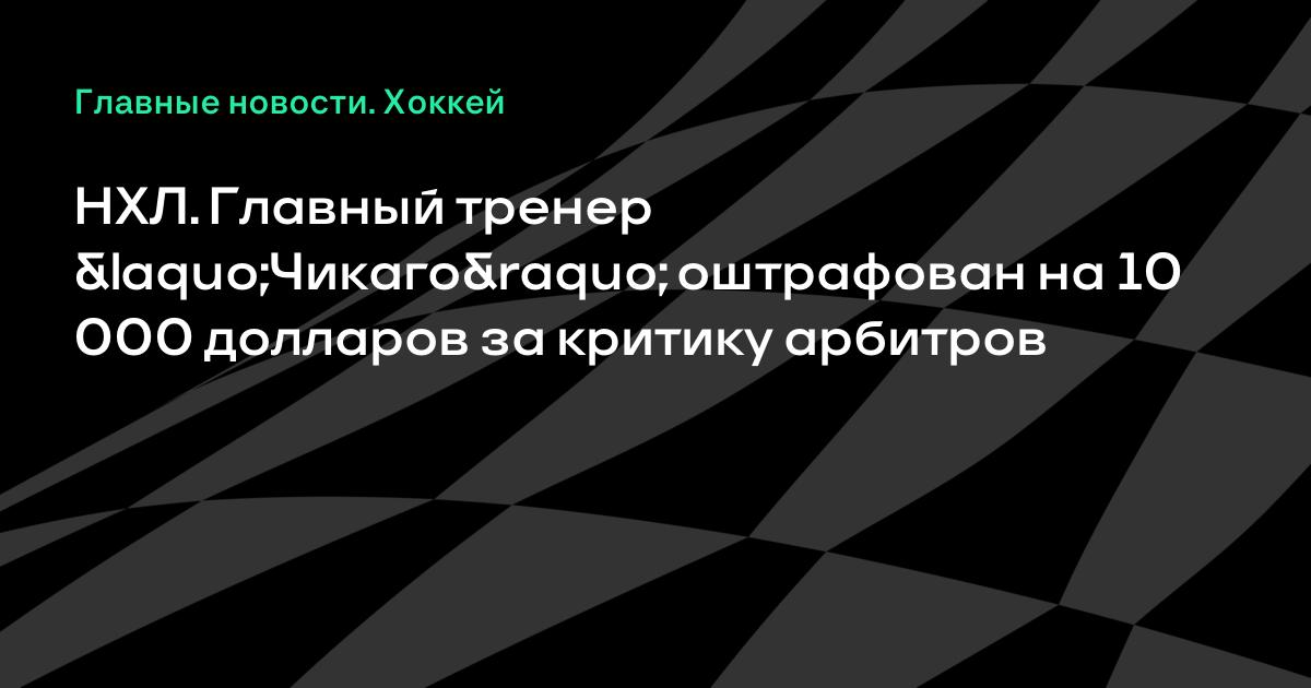 НХЛ. Главный тренер «Чикаго» оштрафован на 10 000 долларов за критику арбитров