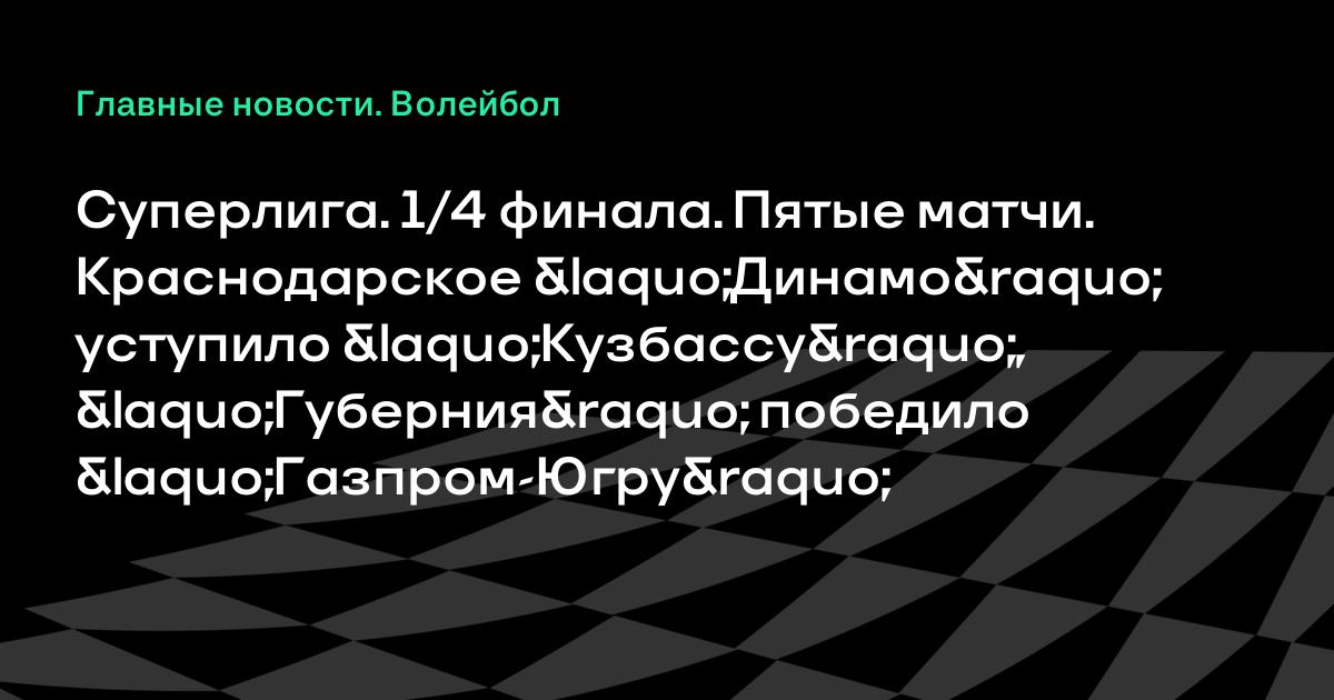 Сегодня состоялись пятые матчи 1/4 финала российской мужской волейбольной Суперлиги. Краснодарское «Динамо» проиграло «Кузбассу» (2-3), «Губерния» победила «Газпром-Югру» (3-0).