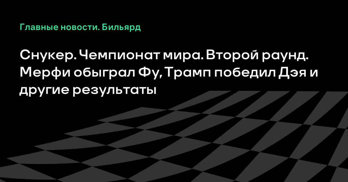 Снукер. Чемпионат мира. Второй раунд. Мерфи обыграл Фу, Трамп победил Дэя и другие результаты