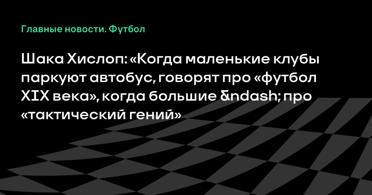 Шака Хислоп: «Когда маленькие клубы паркуют автобус, говорят про «футбол XIX века», когда большие – про «тактический гений»