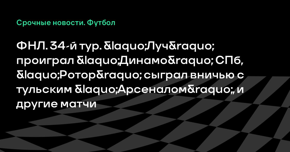 ФНЛ. 34-й тур. «Луч» проиграл «Динамо» СПб, «Ротор» сыграл вничью с тульским «Арсеналом», и другие матчи