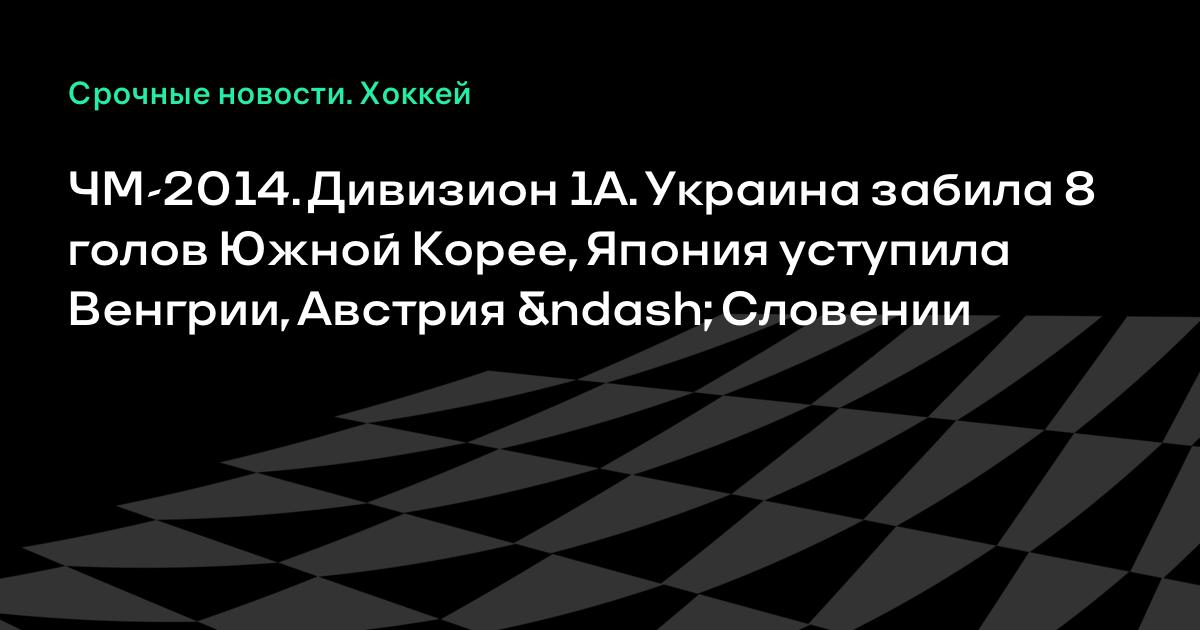 ЧМ-2014. Дивизион 1А. Украина забила 8 голов Южной Корее, Япония уступила Венгрии, Австрия – Словении