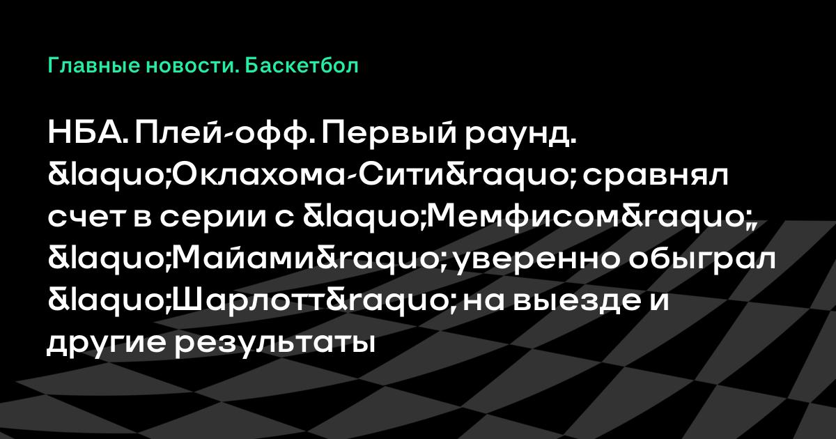 НБА. Плей-офф. Первый раунд. «Оклахома-Сити» сравнял счет в серии с «Мемфисом», «Майами» уверенно обыграл «Шарлотт» на выезде и другие результаты