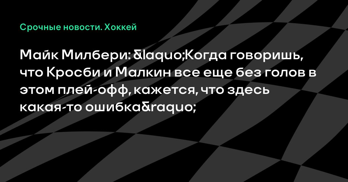Майк Милбери: «Когда говоришь, что Кросби и Малкин все еще без голов в этом плей-офф, кажется, что здесь какая-то ошибка»