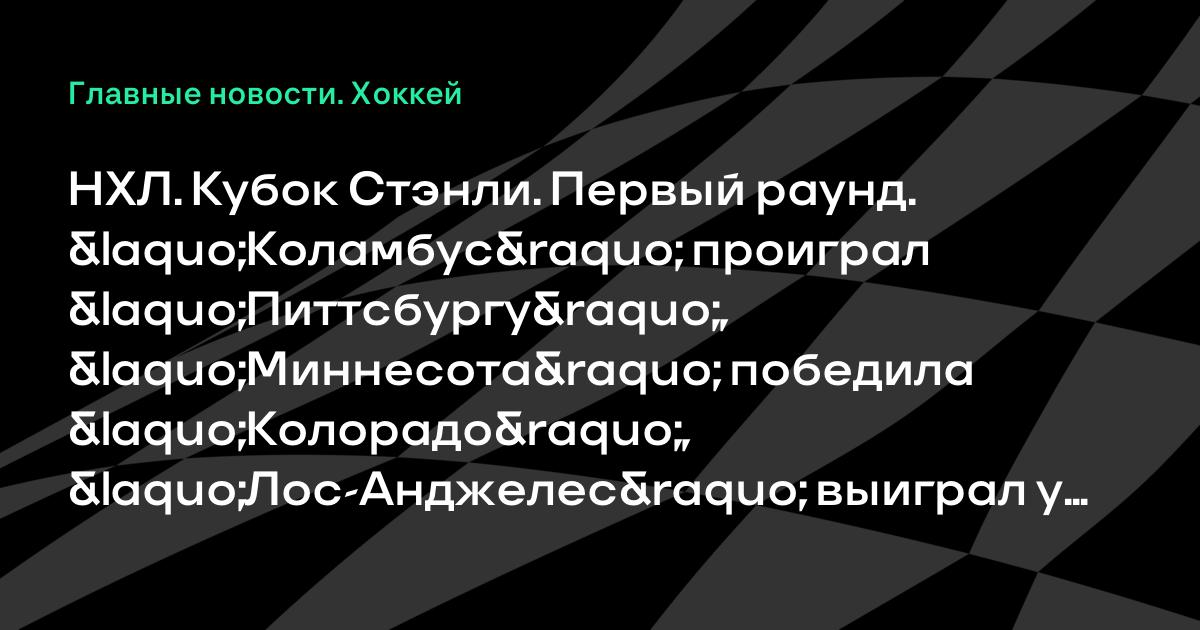 НХЛ. Кубок Стэнли. Первый раунд. «Коламбус» проиграл «Питтсбургу», «Миннесота» победила «Колорадо», «Лос-Анджелес» выиграл у «Сан-Хосе»