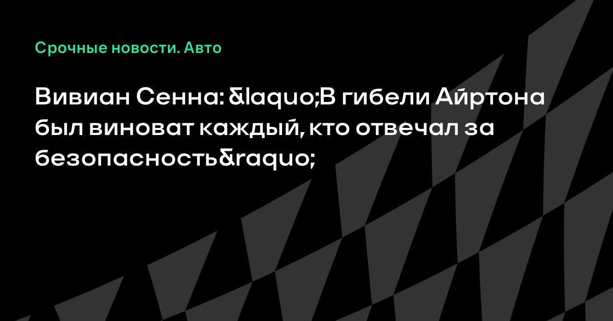 Вивиан Сенна: «В гибели Айртона был виноват каждый, кто отвечал за безопасность»