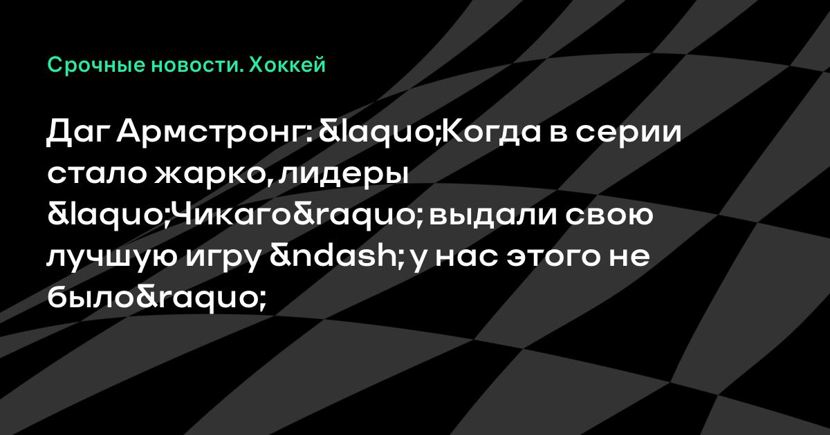 Даг Армстронг: «Когда в серии стало жарко, лидеры «Чикаго» выдали свою лучшую игру – у нас этого не было»